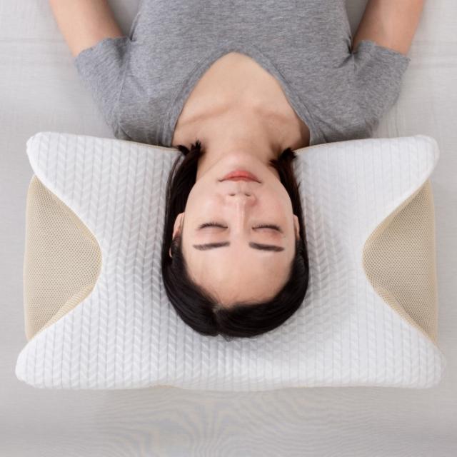 長辺側の首を乗せる部分に高低差を付けたネックフィットサポート構造が首をサポート。