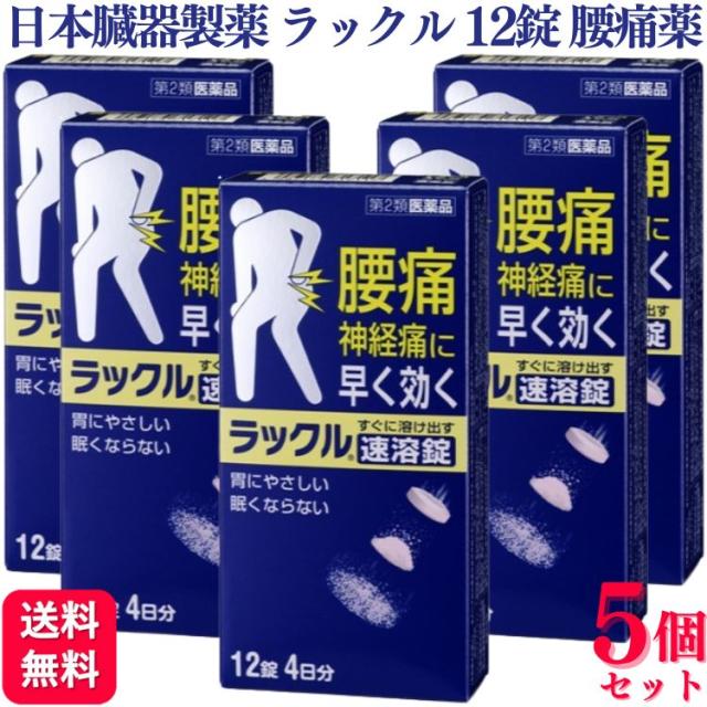 【第2類医薬品】【5個セット】 日本臓器製薬 ラックル 12錠 腰痛 痛み止め ラックル 腰痛薬 神経痛 速溶錠 ラックル速溶錠 眠くならない 送料無料