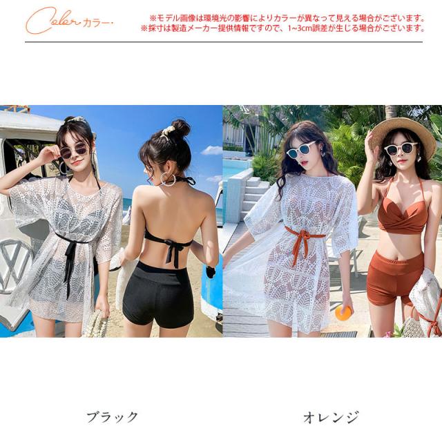 【水曜日まで!10%クーポン配布中】 水着 レディース 40代 50代 体型カバー ラッシュガード 3点セット 長袖 ママ レース タンキニ水着 フィットネス 大きい