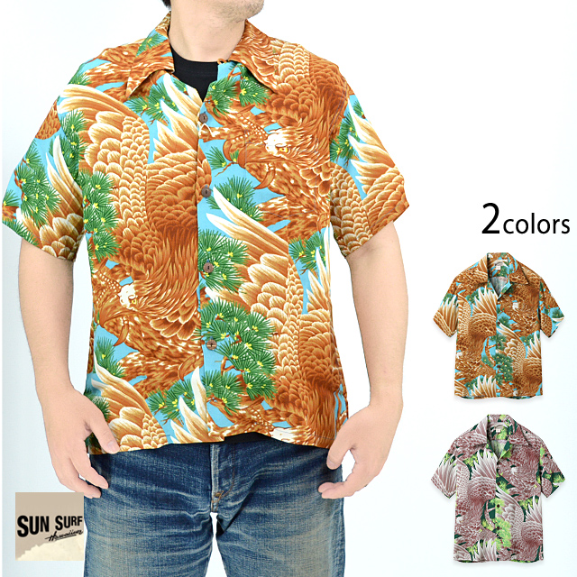 アロハシャツの黄金時代とされる1930〜50年代にかけて作られた「ヴィンテージ」と呼ばれる貴重なアロハシャツを再現し、現代に蘇らせているブランド「SUN SURF」から、SPECIAL EDITION レーヨンアロハシャツ「TAKA -MASTER OF THE HUNT-」(SS39273)のご紹介です。 今にも獲物に飛びかかろうとしている、羽を広げた鷹の姿を描いた大作。 ハワイアンシャツの全盛期を築き上げたブランドの中で、異色かつ大きな成功も収めたとして有名なのが、インド系移民のG・J・ワットムルが1913年に創業したイースト・インディア・ストアが展開していたワットムルス。 ボディーには、てろんとしたレーヨン壁縮緬を採用。 アロハシャツは、生産も非常に少なく、レアなアイテムとなっています。 | ||||||||||||||||||||||||||||||
