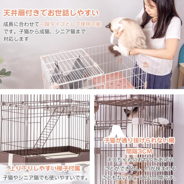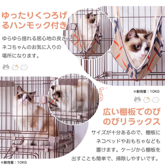 猫ゲージ キャットケージ 猫 ケージ 大型 1段 2段 キャスター付 ハンモック付き 多頭飼い 留守番保護 脱走防止 おしゃれ スリム