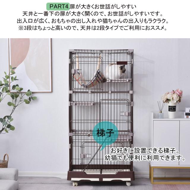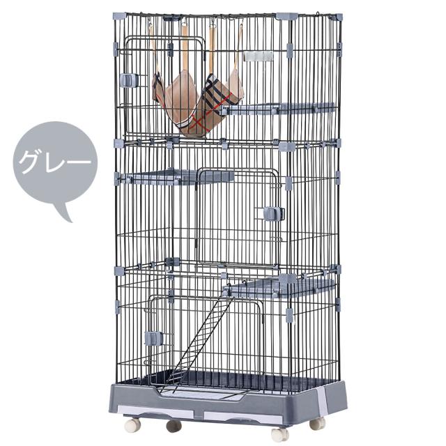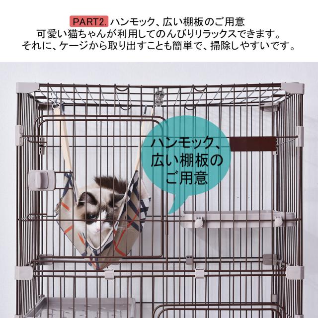 猫ゲージ キャットケージ 猫 ケージ 大型 1段 2段 3段 キャスター付 ハンモック付き 多頭飼い 留守番保護 脱走防止 おしゃれ スリム