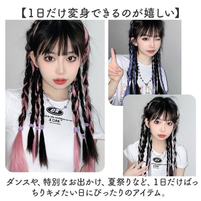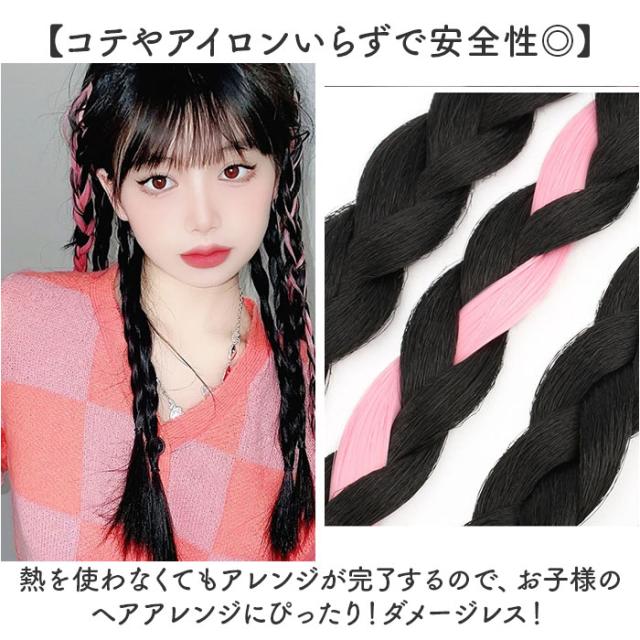カラーエクステ 通販 三つ編み 編み込み ウィッグ エクステ ロングヘア ヘアエクステンション かわいい 可愛い おしゃれ ヘアエクステ つけ毛 女の子 キッズ 子供 ダンスヘア