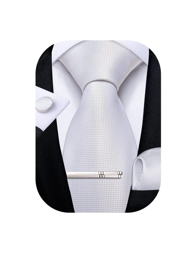 DiBanGu ネクタイ 白 結婚式 無地 ホワイト ポケットチーフ タイピン ネクタイ セット ギフトボックス付き 冠婚葬祭