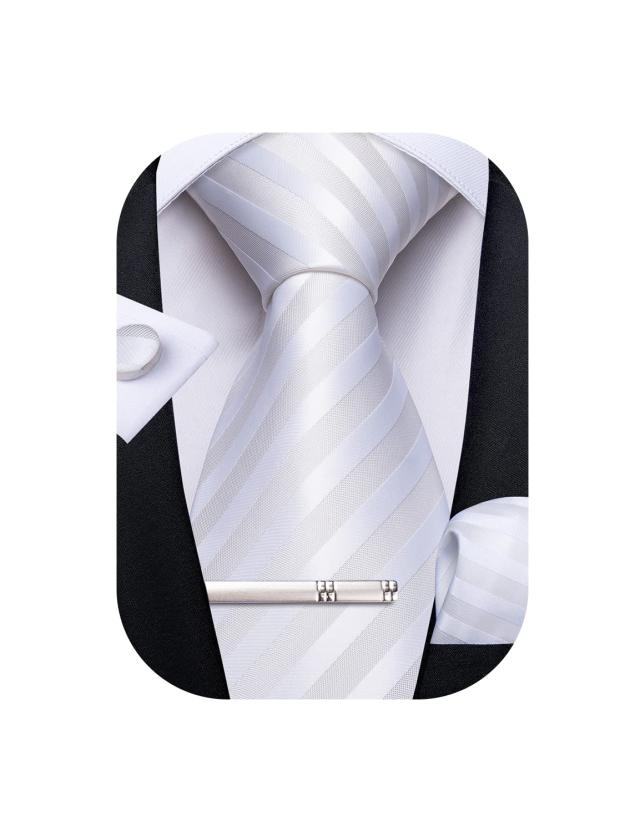 DiBanGu ネクタイ 結婚式 ホワイト ネクタイ ポケットチーフ タイクリップ セット ギフトボックス付き 冠婚葬祭