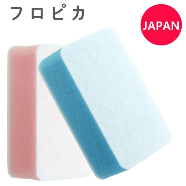 お風呂が大好きになるスポンジ お風呂掃除、今まではゴム手袋をして、換気扇を回し、寒い冬でも窓を開け放してしなければいけない・・・家事の中でも結構大変な作業でした。フロピカならそんな大変な作業とはもうおさらば。 水だけでお風呂ピッカピカ 水だけでお風呂の汚れが落ちるフロピカ。その秘密はスポンジの両面に貼ってある、白い不織布。丈夫なウレタンスポンジに、特殊なゴム(エポクリン)を吹きつけた、厚手の不織布を貼り付けました。 この特殊なゴム(エポクリン)は水やお湯を含ませることで、汚れをずらして吸着します。水かお湯を含ませたスポンジは、洗剤なしで湯垢をぐいぐい落としてすっきり!洗剤を使わなくてもいいので、お風呂のたびに簡単にお掃除できます。 安心安全なスポンジ「フロピカ」で、お子様と一緒にお風呂掃除。汚れを溶かす成分や、薬剤は含まれておりませんので、お子様でも安心してお使いいただけます。ブルー・ピンクの2色をご用意