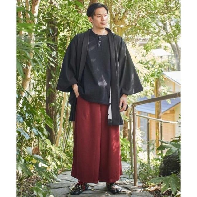 艶感のある生地にワンポイントで和の刺繍が入った袴風パンツ。伸縮性のあるしっかりした生地でゆったり余裕のあるサイズ感。ウエストはゴム仕様でポケット付き。落ち着いた色合いで男女問わず着られます。天、地、水をイメージした紋をリデザイン。天は鶴紋、地は菊紋、水は