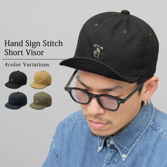 ”ゆるいハンドサイン刺繍がポイントのショートバイザー”