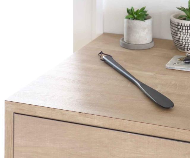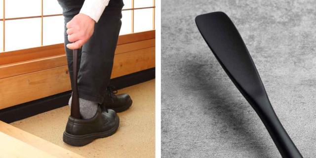 踵に沿ってすっきり入る、丸みのある形状は、大切な靴をスムーズに履くことができます。マットな落ち着いた質感は、洋風・和風どちらの玄関にも馴染みます。