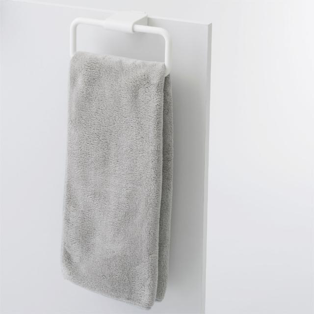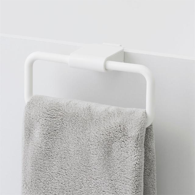 扉に引掛けるだけで簡単に取り付けられるタオルリング