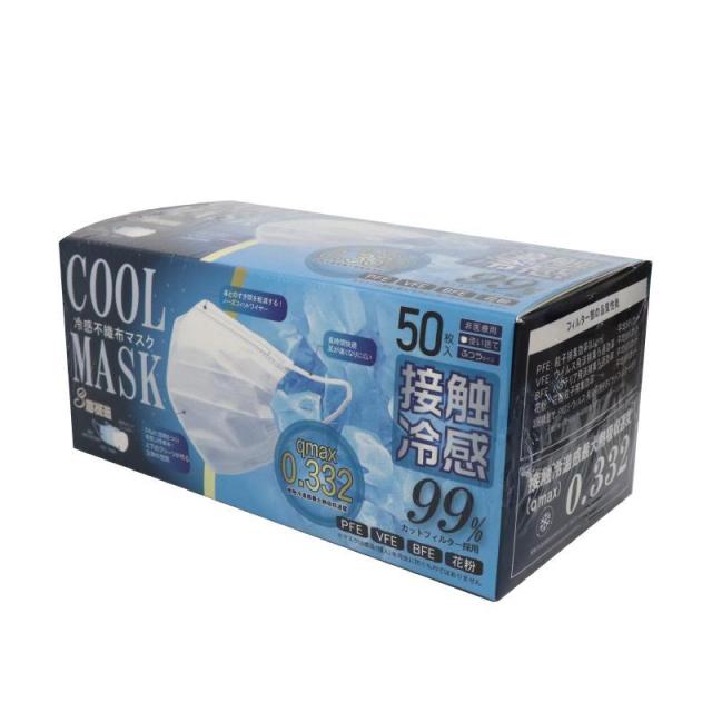 冷感不織布マスク 50枚入 ホワイト プリーツタイプ ひんやり 使い捨て 3層構造 花粉対策 接触冷感 夏用マスク ホワイト