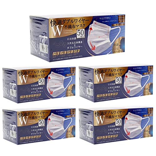 快適 ダブルワイヤーマスク 不織布 50枚入×5個(合計250枚入り) ふつうサイズ ホワイト 3次元立体構造 ヒロコーポレーション