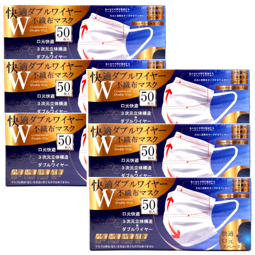快適 ダブルワイヤー不織布マスク 50枚入×6個(合計300枚入り) ふつうサイズ ホワイト 3次元立体構造 ヒロコーポレーション