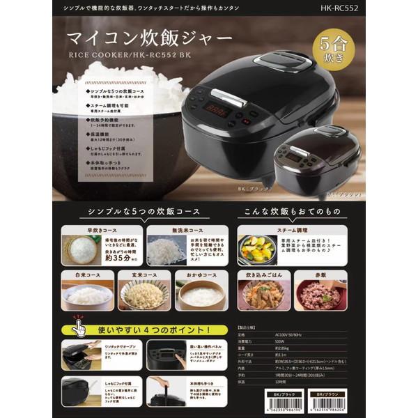 6900円送料無料 炊飯器 5合炊き HK-RC552 BK ブラック マイコン式 炊飯 白米 早炊き 無洗米 おかゆ スチーム調理 炊き込み 赤飯 蒸