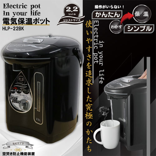 電気保温ポット 2.2L ブラック HLP-22BK 電気ポット 電動ポット 給湯ポット ポット 湯沸かし 保温 HIRO