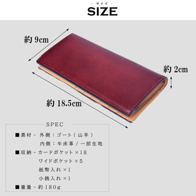 | 特徴 | 【マテリアル】 ゴートレザー・・・ 深い色合いを施したゴート(山羊)レザーを使用。 あえて出した染ムラには味があり、天然素材ならではの表情を楽しめます。 ゴートの特徴は、一般的な牛革より薄い為、軽量となります。 手触りは柔らかく、もちっとしている印象。 きめの細かいシワは、自然が作り出すアート作品の様。 シンプルデザインでありながら、高級感のある逸品 【収納】 薄くスリムなフォルムはビジネスシーンでも際立ち、スマートな印象。 多くなりがちなカードも18枚収納可能。 ワインドポケットにはレシートなどきれいに収納できます。 小銭入れはマチが無い為、少量の収納をおすすめします。 紙幣入れは収納金額約30万程が理想です。 【開発コンセプト】 MGSABLEの商品は一つ一つ思い入れがあります。 “お客様に楽しんでもらいたい” そんなコンセプトを元に商品開発が進みます。 創業75年の知識を元に、独自で開拓されたルート 工場との強いパイプラインで、 目利きの良いバイヤーが世界を飛び回ります。 そして、技術の高い職人が一つ一つ丹精込め、仕立てます。 “本物”にこだわり、 素材をいかした製品へと生まれ変わります。 【アウトレット】 こちらの商品は訳あり商品の為、お買い得価格となっております。 こちらの商品は一部の商品は訳あり箇所がございます。 革の個性でもありますので、状態が酷いものを除き出荷しております。 通常の使用に問題の程度でございますが、 こちらの内容をご了承の上、ご注文をお願い申し上げます。 【革の個性について】 天然のキズやシワなども 入っている場合があり、これらは本革ならではの個体差によるものと、 二つとない表情を魅せる革の個性であるため、 風合いをお楽しみ頂けると幸いでございます。 【ラッピング承ります】 誕生日などのお祝い用にラッピング包装承ります。 別途200円となります。 |