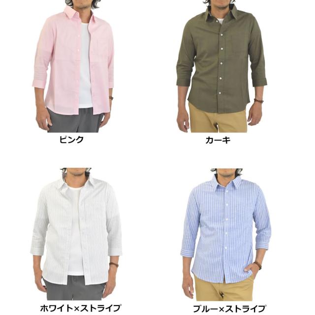 新作 シャツ メンズ 七分袖 7分袖 ストレッチ カジュアルシャツ 七分袖シャツ 7分袖シャツ メンズシャツ 無地シャツ ストライプシャツ 綿麻シャツ 春 夏 秋 クールビズ コットンリネン 涼しい 夏用 春服 秋服 春シャツ 夏シャツ 秋シャツ メール便送料無料