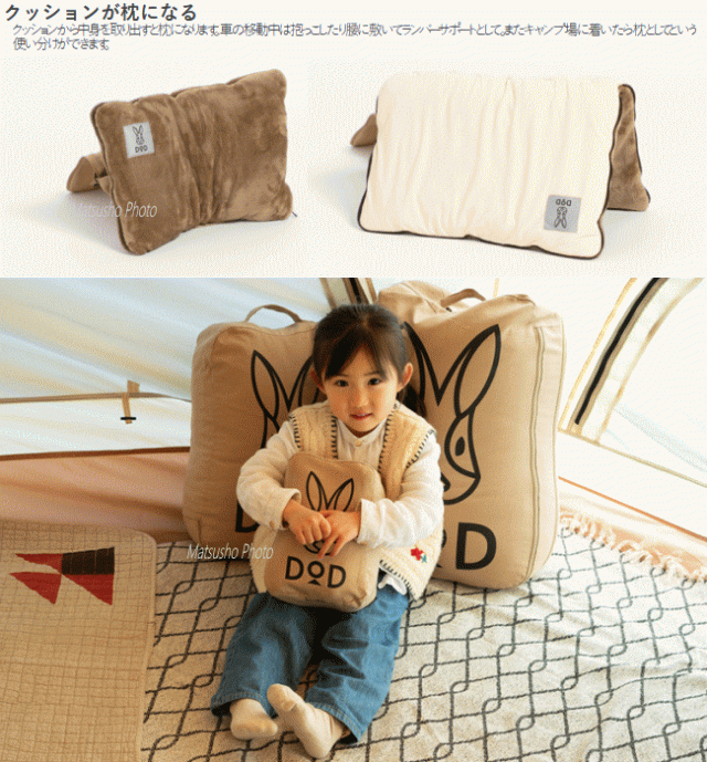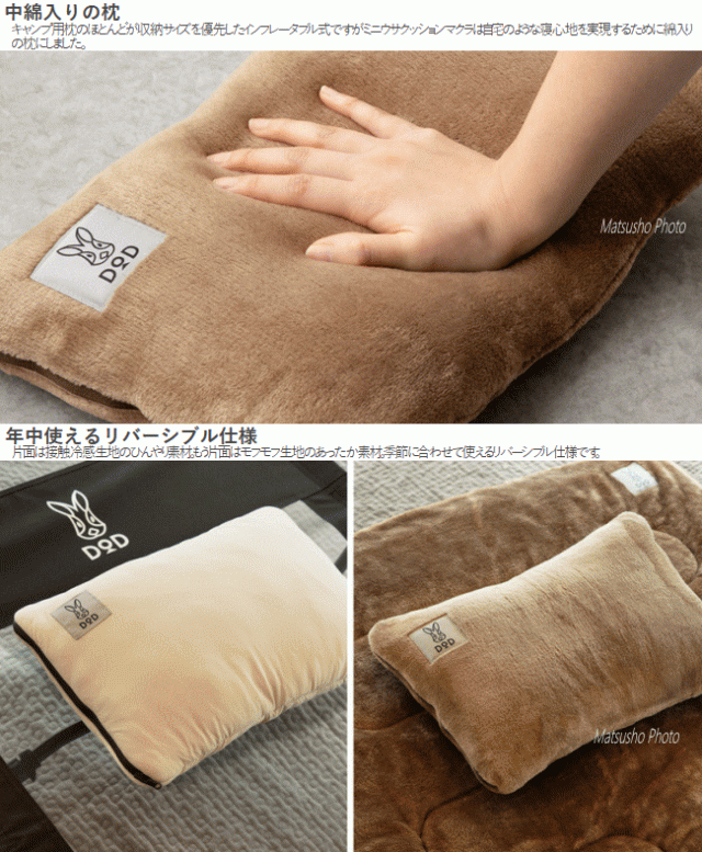 DOD 枕 キャンプ用枕 マクラ クッションマクラ 中綿入り枕 リバーシブル仕様 ミニクッション 丸洗い可能 寝室 リビング 車の中 アウトドア キャンプ ミニウサクッションマクラ CP1-056-TN
