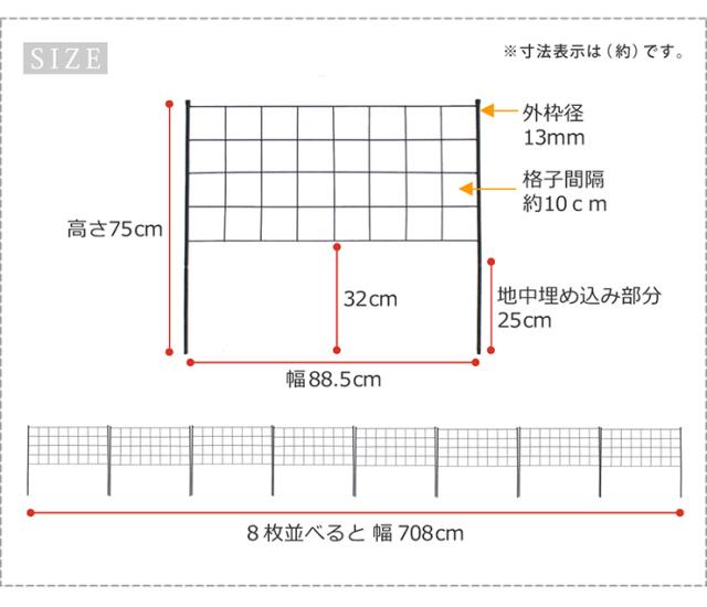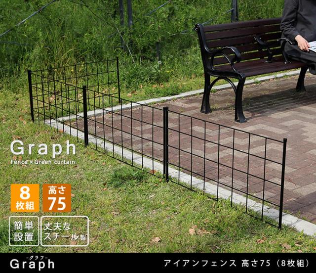 柵 おしゃれ アイアンフェンス 高さ75 グラフ 8枚組 モダン モノトーン 通気性 採光性 耐久性 ガーデニング 花壇 ナチュラル 朝顔 ゴーヤ アンティーク風 仕切り