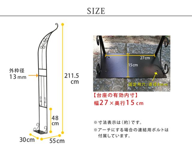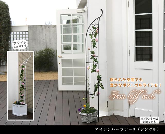 ガーデニング おしゃれ アイアンハーフアーチ バラアーチ フラワーアーチ ローズアーチ バラ つる 園芸 庭園 花台 支柱 省スペース 華やか ベランダ 玄関 屋外