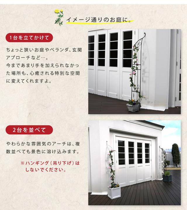 ガーデニング おしゃれ アイアンハーフアーチ ダブル バラアーチ フラワーアーチ ローズアーチ バラ つる 園芸 庭園 花台 支柱 省スペース ベランダ 玄関 屋外