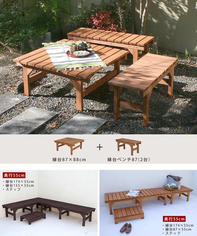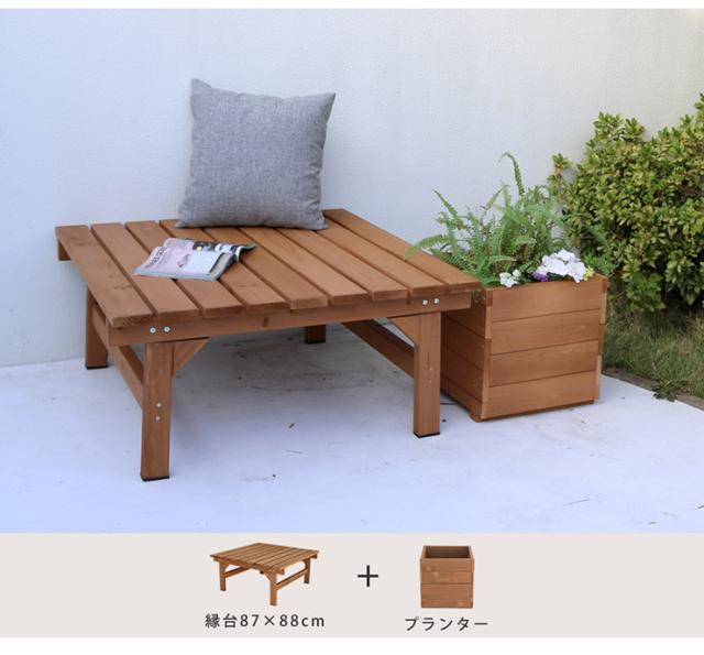 ガーデンチェア ナチュラル ユニット縁台ベンチ hiyori 87x88 コンパクト 木製チェア 天然木 ガーデニング 縁側 庭 縁側 玄関 休憩スペース 組立品 室内用