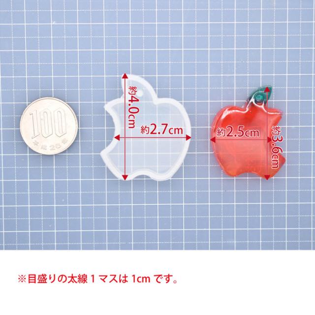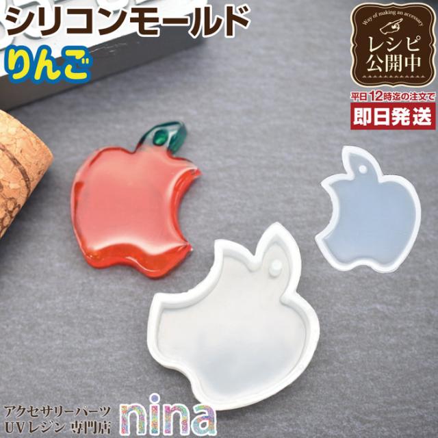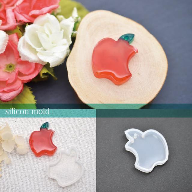 シリコンモールド 穴付き りんご アップル | シリコンモールド りんご アップル 穴付き アクセサリー 樹脂 手作り ハンドメイド UVレジン 手芸