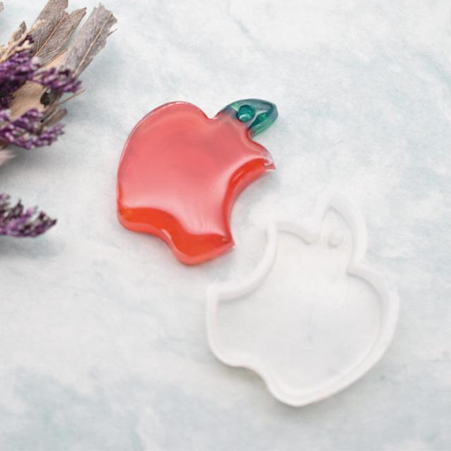 シリコンモールド 穴付き りんご アップル | シリコンモールド りんご アップル 穴付き クラフト 樹脂 手芸 ハンドメイド 立体 アクセサリー ネックレス デコレーション レジン液 手作り UVレジン レジン アクセサリー 3D
