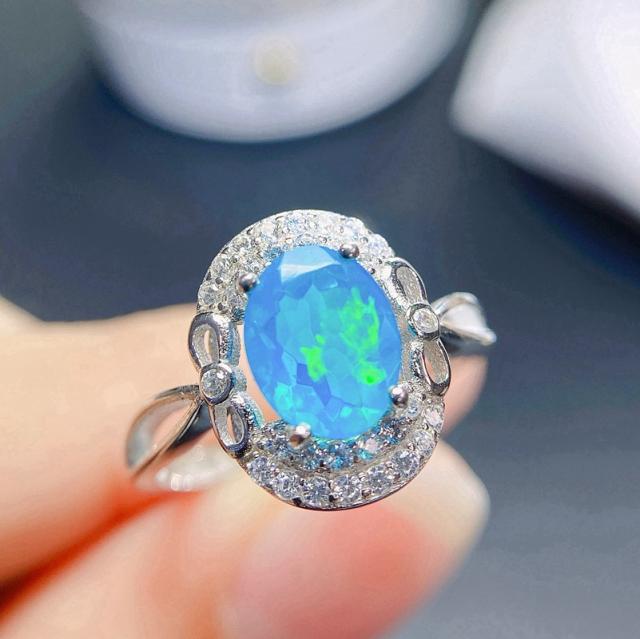 天然オパール(6*8mm)オパールリング10月誕生石の指輪925シルバー