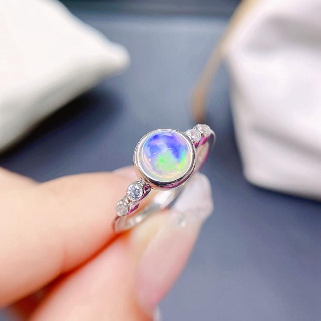 オパールリング 10月誕生石の指輪925シルバー 天然オパール(6*6mm)