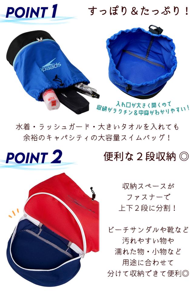 speedo スピード スイム プール バッグ 2way スイミング バッグ ワンショルダー 斜めがけ リュック 2室 《レビュー記入でメール便無料》 靴入れ キッズ ジュニア 小学生 中学生 高校生 女の子 男の子 部活 クラブ活動 試合 ジム スポーツ : SD95B04 ジュニア スイムバッグ
