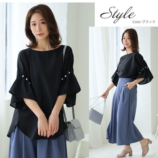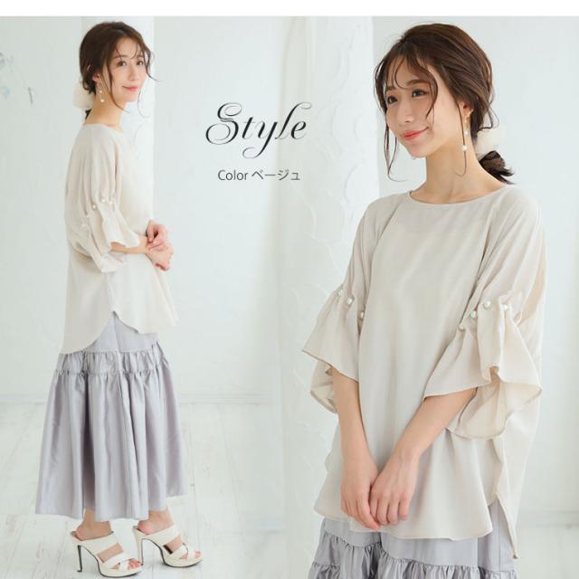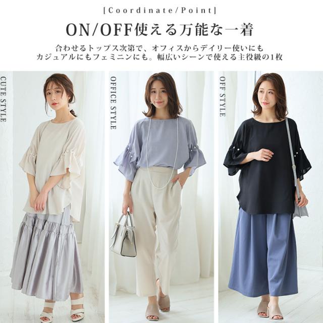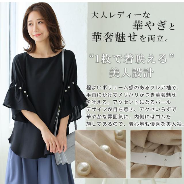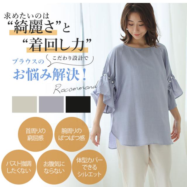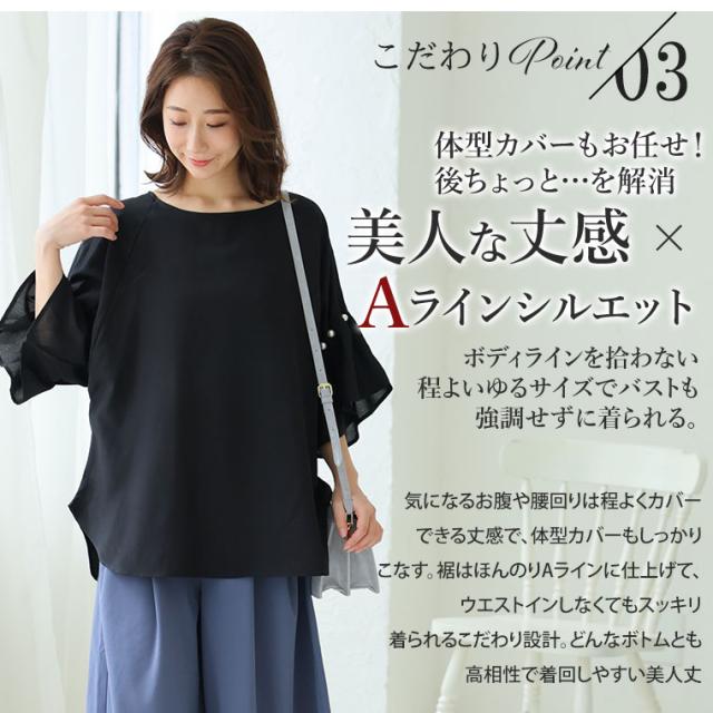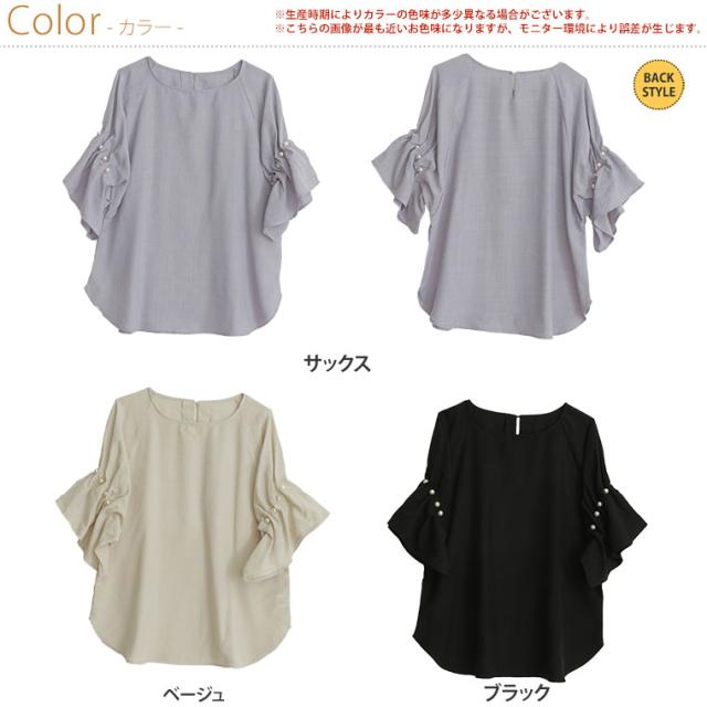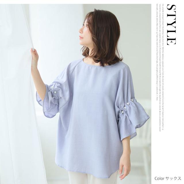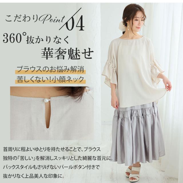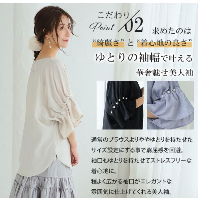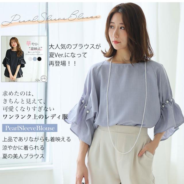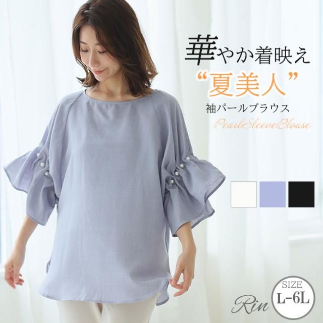 新作 大きいサイズ レディース ブラウス | Rin 袖タックパールブラウス オフィス 大人 着やせ 体型カバー ビジネス 通勤 ママ [861282] LL 3L 4L 5L 6L