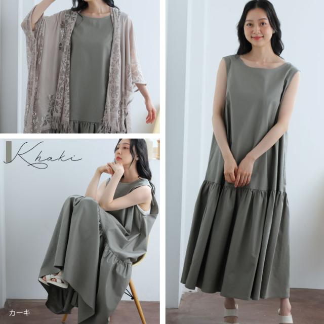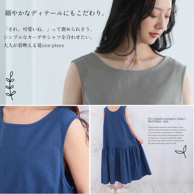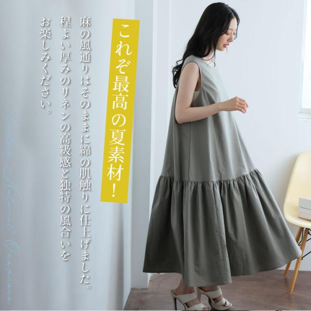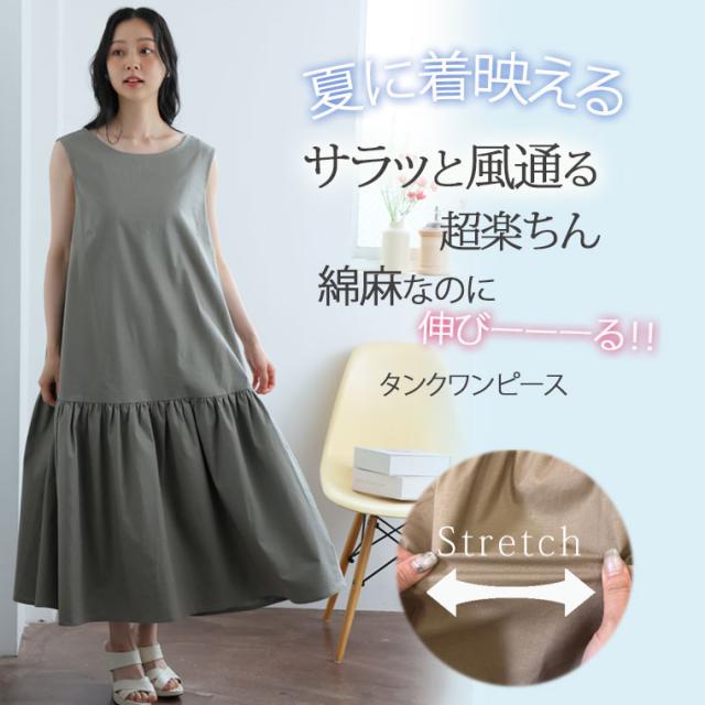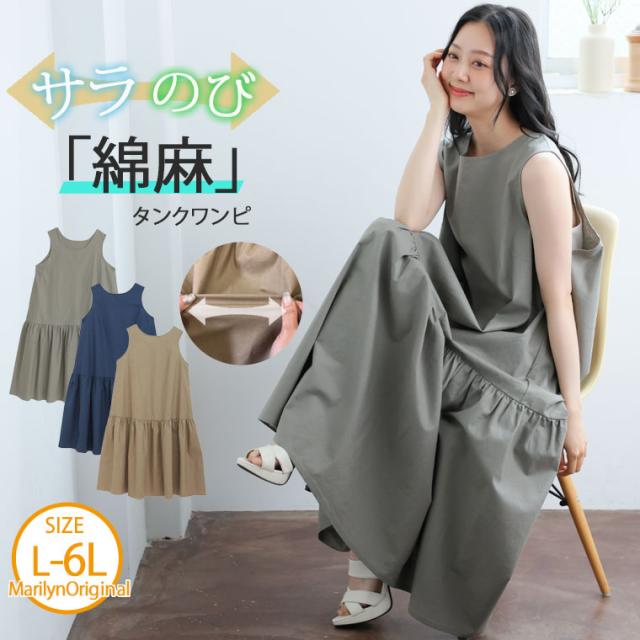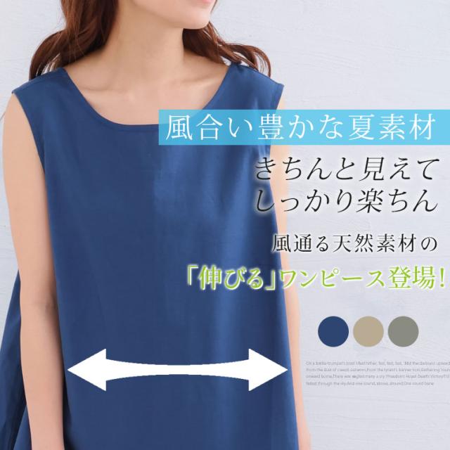 新作 大きいサイズ レディース ワンピース | 伸びる綿麻 ノースリワンピース [473299] LL 3L 4L 5L 6L