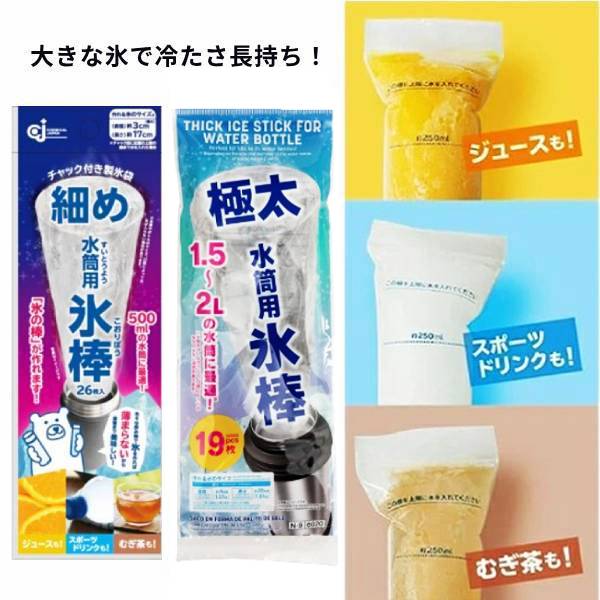 チャック付き 製氷袋 極太 細め 水筒用 氷棒 長い氷 アイス棒 麦茶 ジュース スポーツドリンク 部活 マグボトル マイボトル ポット 溶けにくい 製氷機