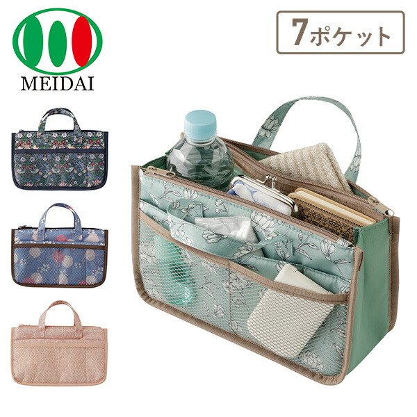 7daysバッグイン 7ポケット バッグインバッグ ポーチ ミニバッグ バック 小物入れ 仕分けポケット 整理 花柄 いちご 小鳥 植物 ダマスク ボタニカル 軽量 おしゃれ メイダイ 【送料無料】