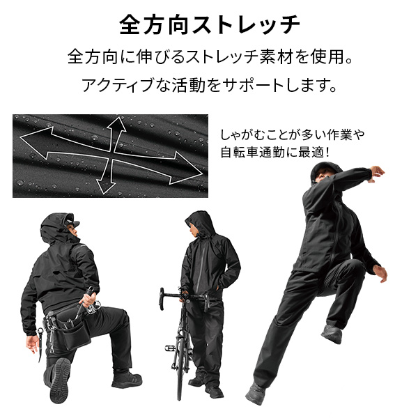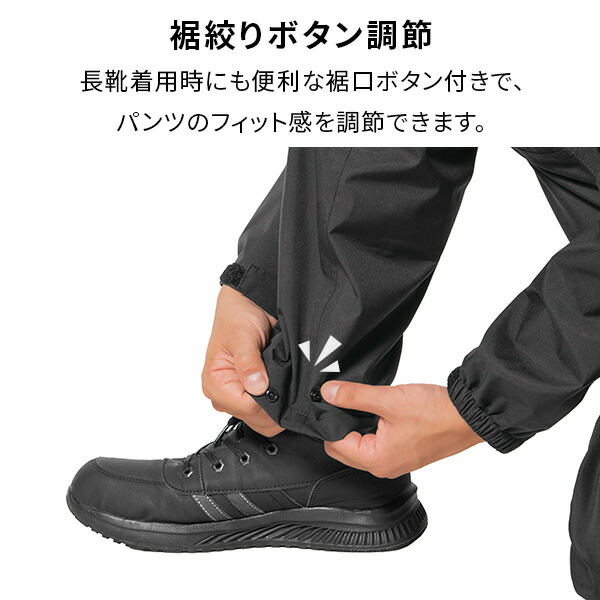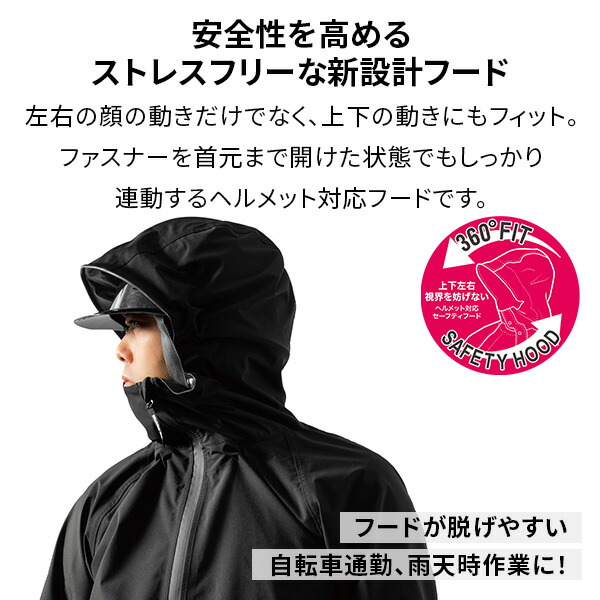 | 商品説明 | ●上下左右の顔の動きに連動する新設計フードで安全性と快適性を向上 ●フード後頭部にあるサイズ調整テープで視界スッキリ ●首元の調節コードで頭と首元をぴったりフィット ●フードを丸めて、専用テープで立ち上げ襟に ●ムレを開放し、通気性を向上させる背中のベンチレーション ●夜間の視認性を高める右袖反射プリント ●耐水圧:10000mmH2O ●透湿度:10000g/m2-24h ●ヒップ部分はシームレス設計で摩耗に強く防水性向上 ●ウエストを絞れる調節コード ●脚丈長さにピッタリ合わせる裾絞りボタン調整 ●表生地は環境に配慮した非フッ素撥水 ●縫い目には、防水性を高めるシームテープ加工 |