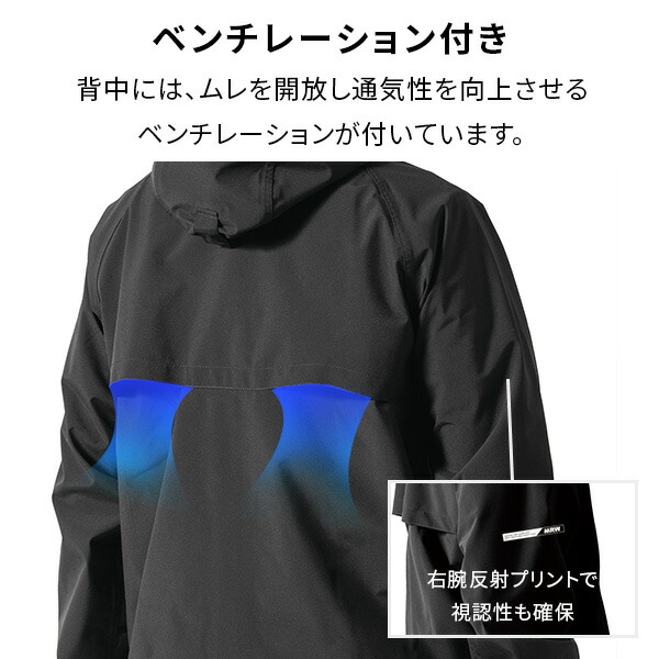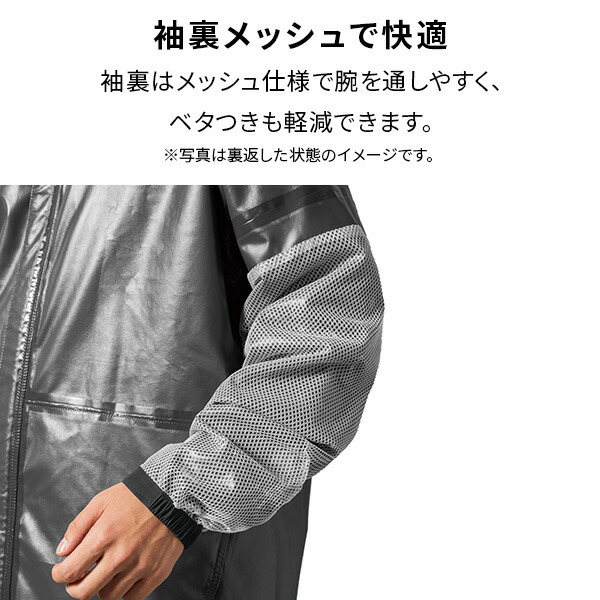 | 材質 | 表:ポリエステル100%(熱可塑性ポリウレタンラミネート) 裏:ポリエステル100%メッシュ(袖部分) |