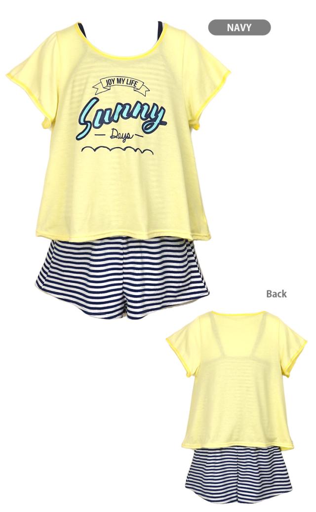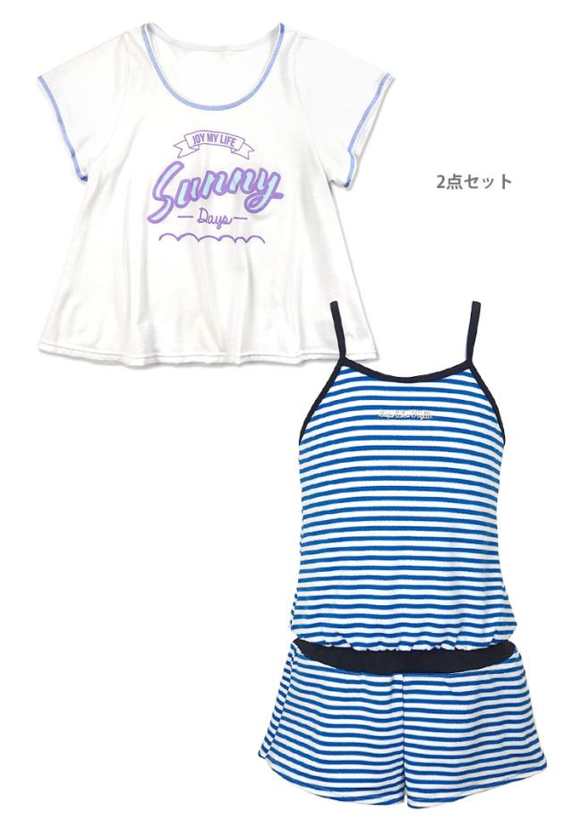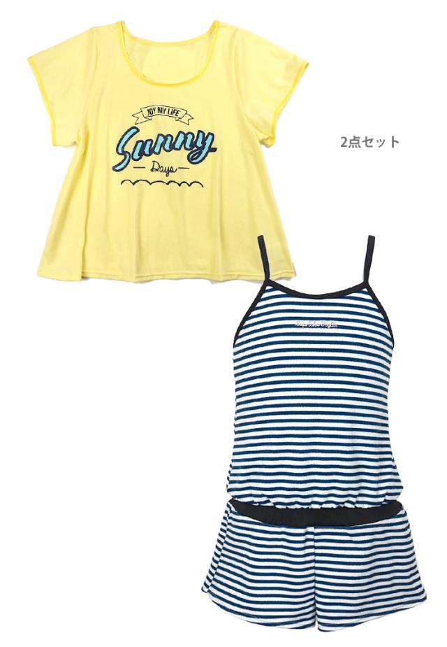 ワンピース スクール水着 セット キッズ ジュニア 女の子 140 150 160 ネイビー ブルー 360122 セット Tシャツ カバーアップ No.sw3564