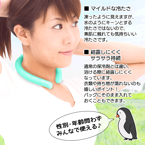 | 28度の常温で固まる 冷感ネックリング! 熱がこもりやすい 首筋から背面までを冷却! | |