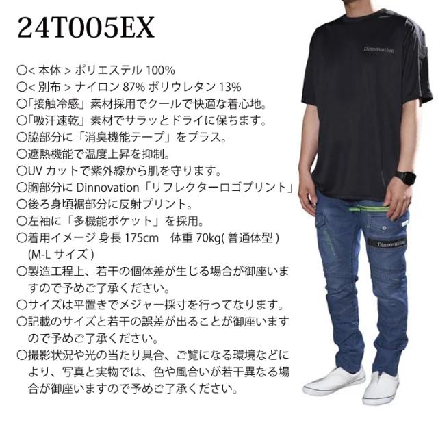 Dinnovation 半袖Tシャツ 24T005EX 接触冷感 吸汗速乾 脇消臭テープ 遮熱 UVカット ロゴ入り 多機能ポケット 反射 春夏 作業服 作業着 メンズ ディノベーション