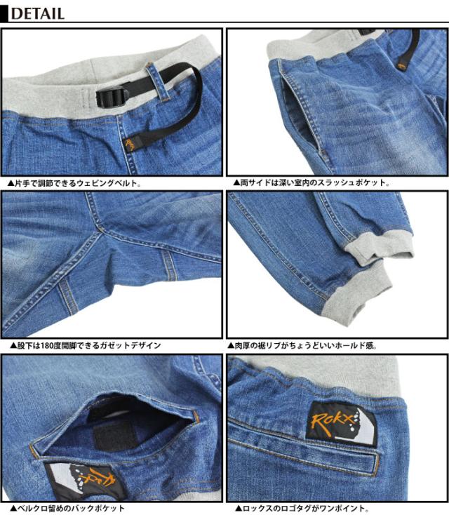 Rokx ロックス エムジーデニムウッドパンツ メンズ MG DENIM WOOD PANT クライミングパンツ ジョガーパンツ デニムパンツ アウトドア キャンプ ソロキャンプ 登山 釣り RXMS191023 裾上げ不可