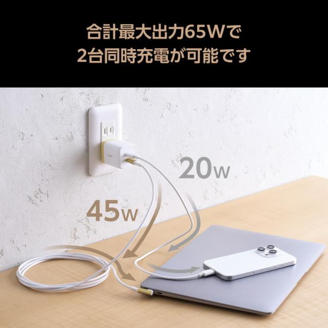 【在庫処分・お買い得!】 エレコム ILMF -イルムフ- USB Power Delivery 65W キューブ AC充電器 65W USB-C 2ポート type-c タイプC USB 充電器 PPS対応 スイングプラグ ホワイト ┃MPA-ACCP43YL-IL