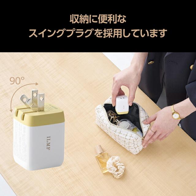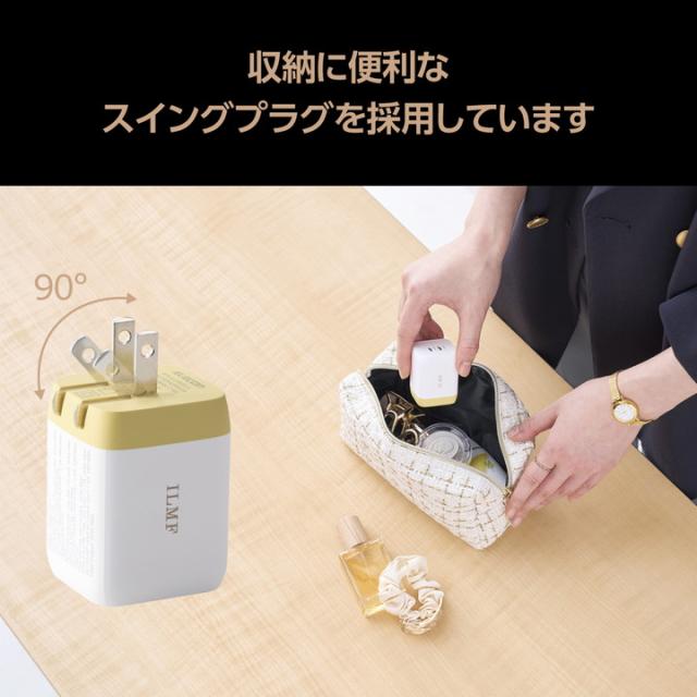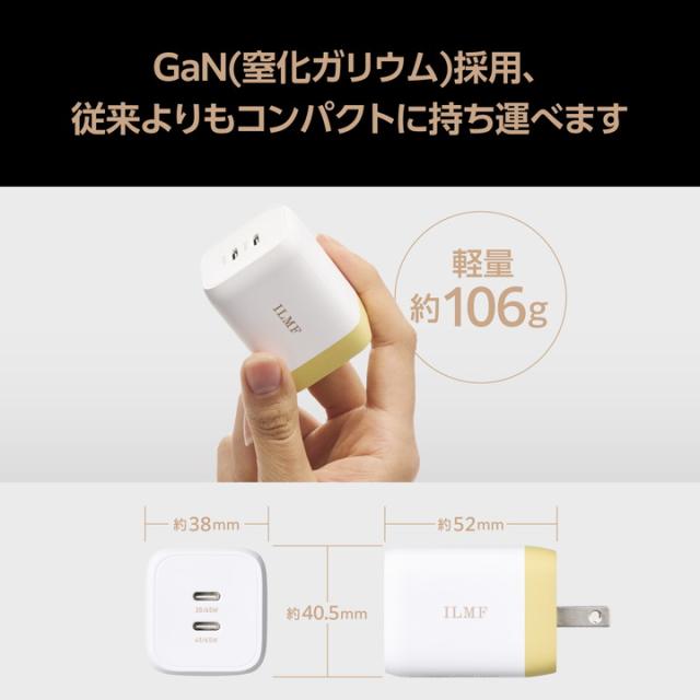 USB Type-C(TM)ポートを2ポート搭載し、スマートフォンとノートパソコンを2台同時に充電可能。私らしい仕事道具で毎日をもっと輝かせる、“ILMF”シリーズのUSB AC充電器です。小型・軽量なので外出や出張などの際の持ち運びに便利です。