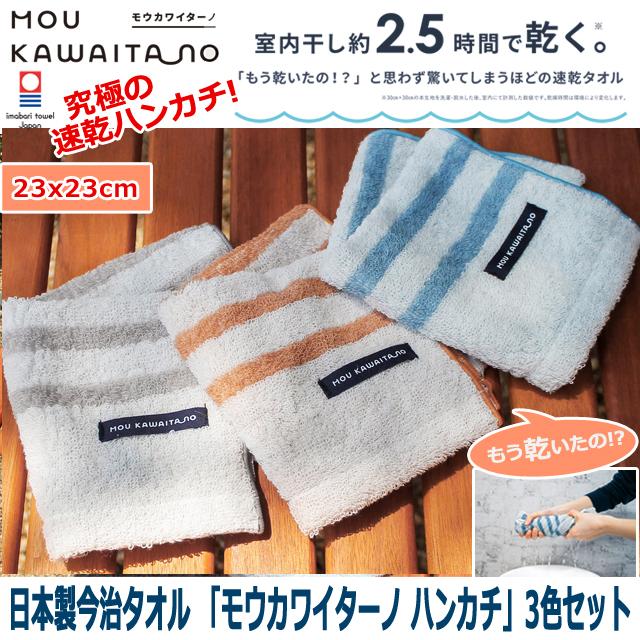 日本製今治タオル 「モウカワイターノ ハンカチ3色セット」(タオルハンカチ 速乾タオル 梅雨時洗濯対策 生乾き対策 室内干しタオル ハンドタオル)