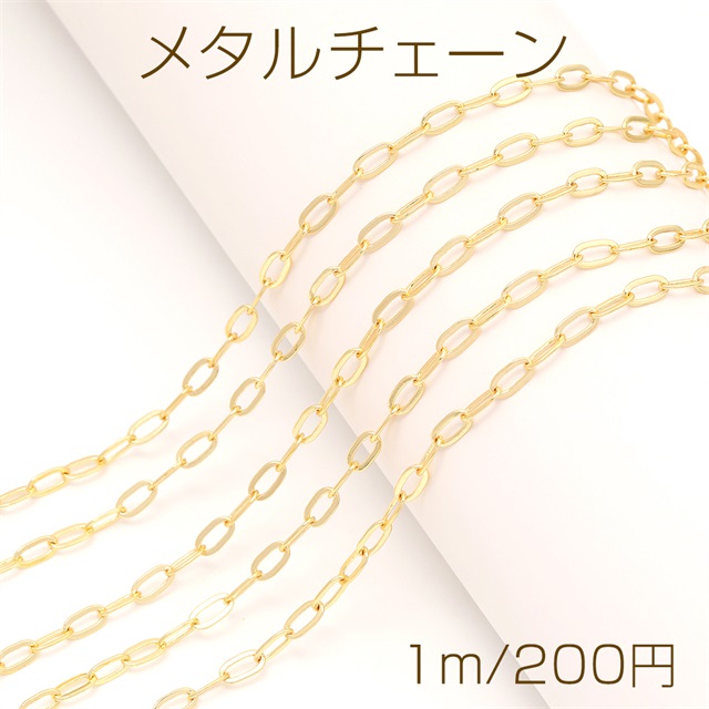 メタルチェーン オーバルチェーン ネックレスチェーン アクセサリーチェーン 色落ちしにくい 銅製 18Kゴールドメッキ(長さ1m)