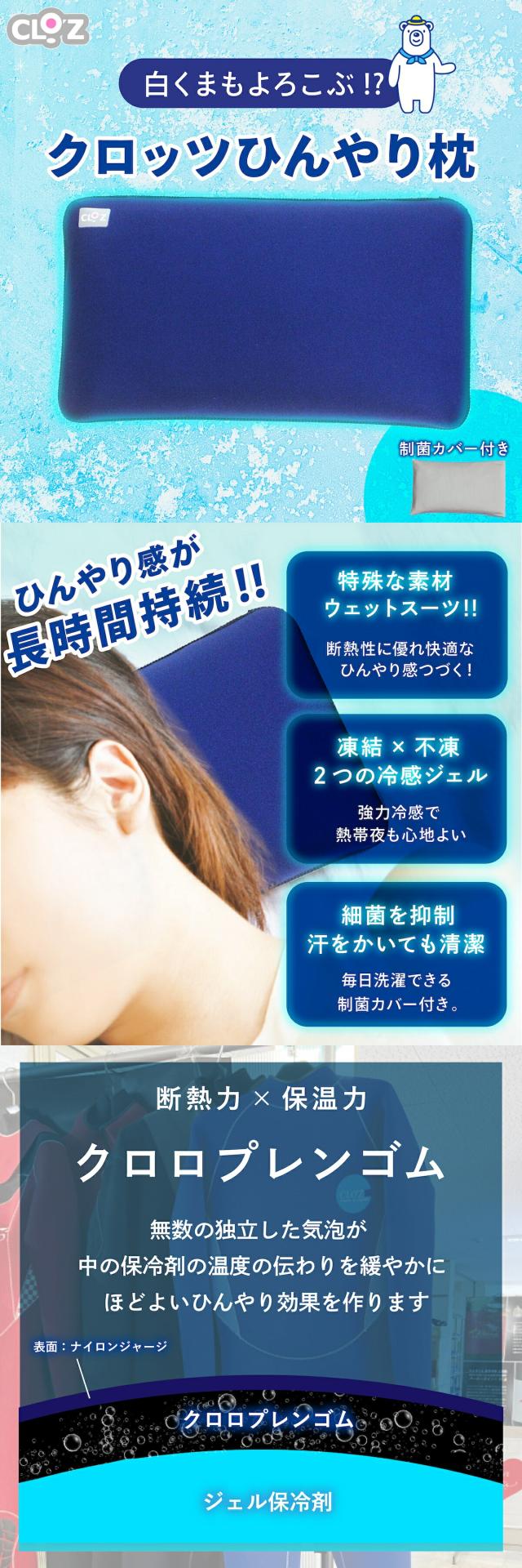 ひんやり枕 クロッツ ひんやり ひんやりグッズ 冷感 枕 ジェル ひんやりまくら 冷感ジェル枕 冷感まくら 冷感枕 冷たい枕 枕カバー 枕 低め 熱中症対策グッズ クールグッズ 冷感グッズ 暑さ対策 安眠 大人 子供 CLO’Z