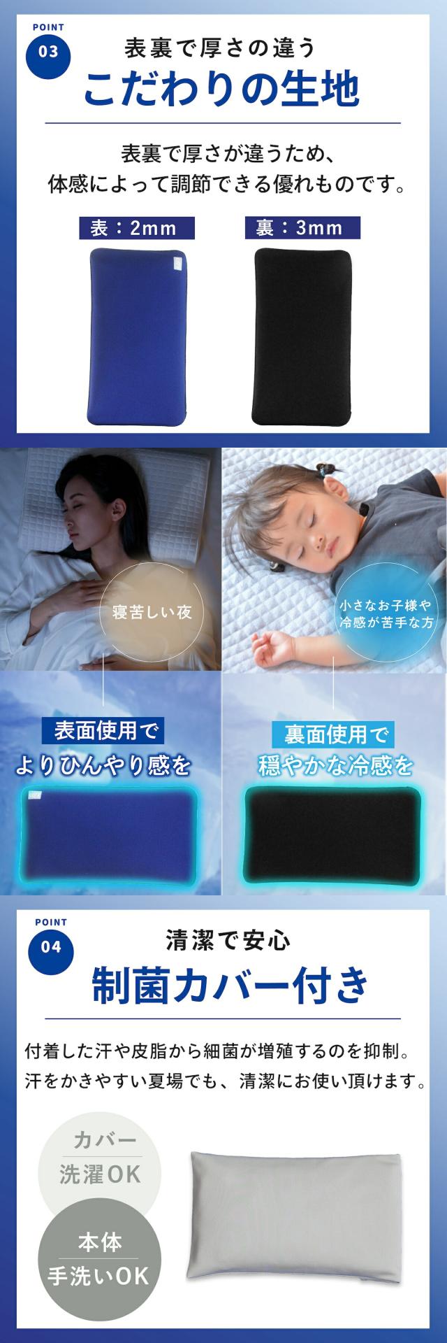 ひんやりした爽快感が長時間持続し、クーラーいらずで安眠できます。