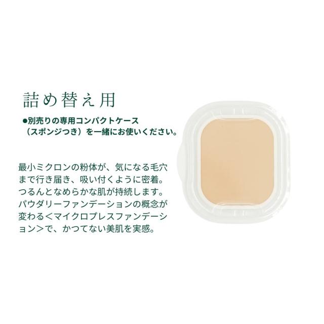 独自のプレス技術<マイクロプレス製法>によって、ルースパウダーの軽く細かい粉質感と、ファンデーションの密着感が両立。カバーマーク独自の『マイクロプレスファンデーション』です。※専用コンパクトケースは付いておりません。