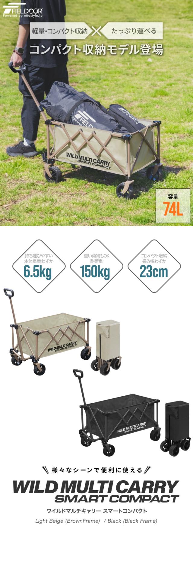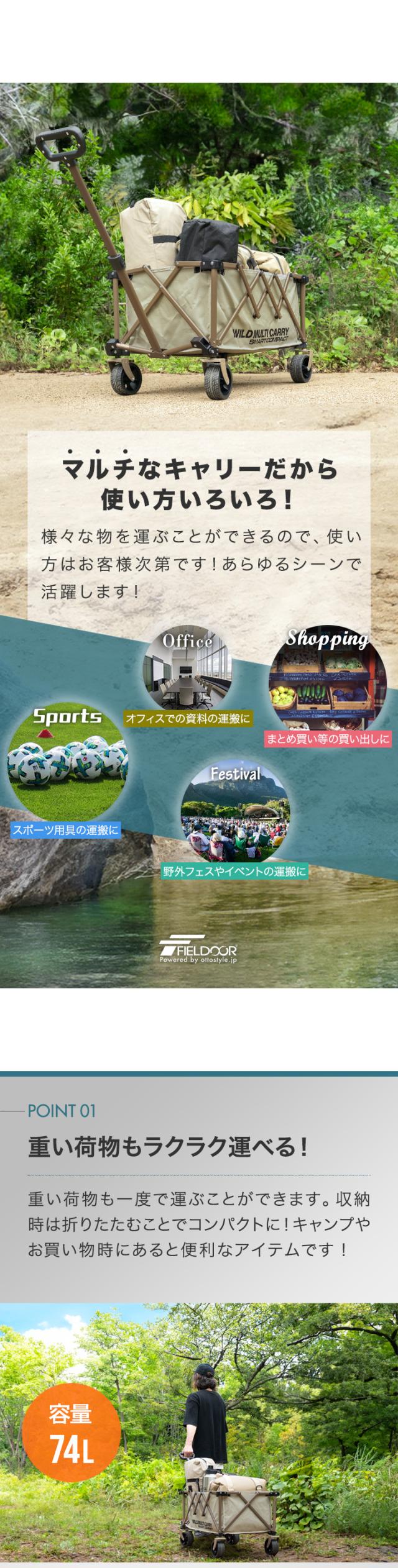 FIELDOOR キャリーカート 折りたたみ 大容量 75L キャリーワゴン コンパクト アウトドアワゴン ワイルドマルチキャリー スマートコンパクト 4輪 収納 小さい レジャー アウトドア 持ち運び 便利 台車 耐荷重150kg 頑丈 お買物 1年保証 送料無料