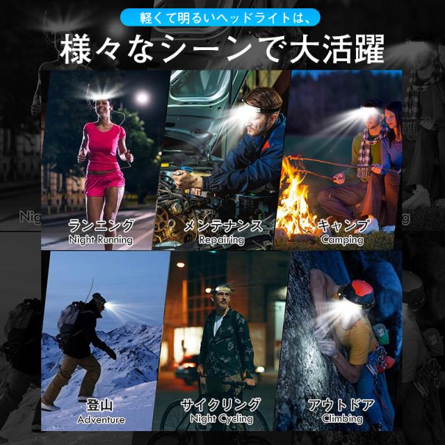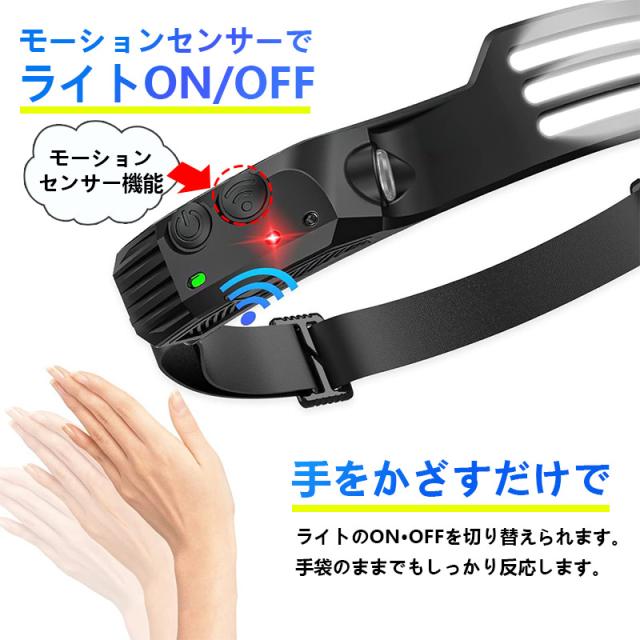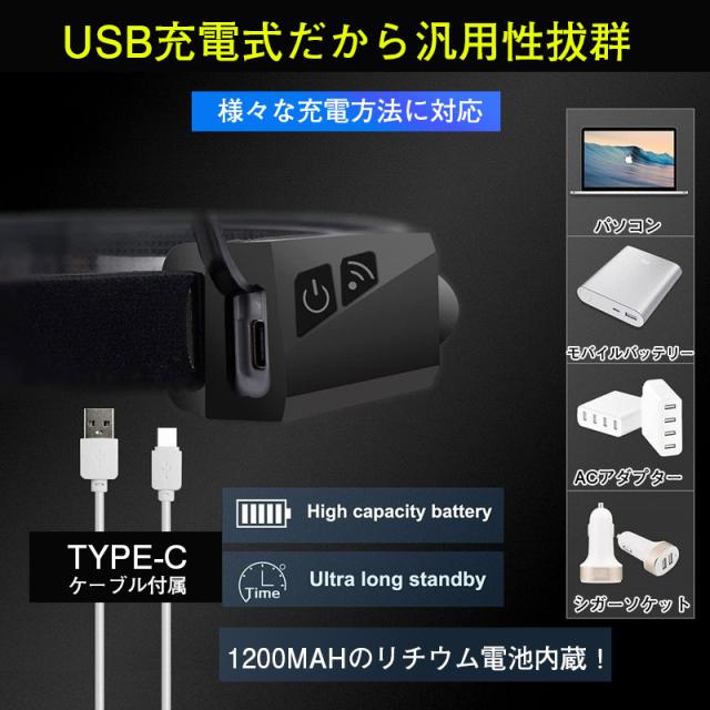 ヘッドライト 充電式 LED ヘッドランプ 防水 明るい 長時間 usb コンパクト 軽量 ランニング アウトドア センサー キャンプ フィッシング